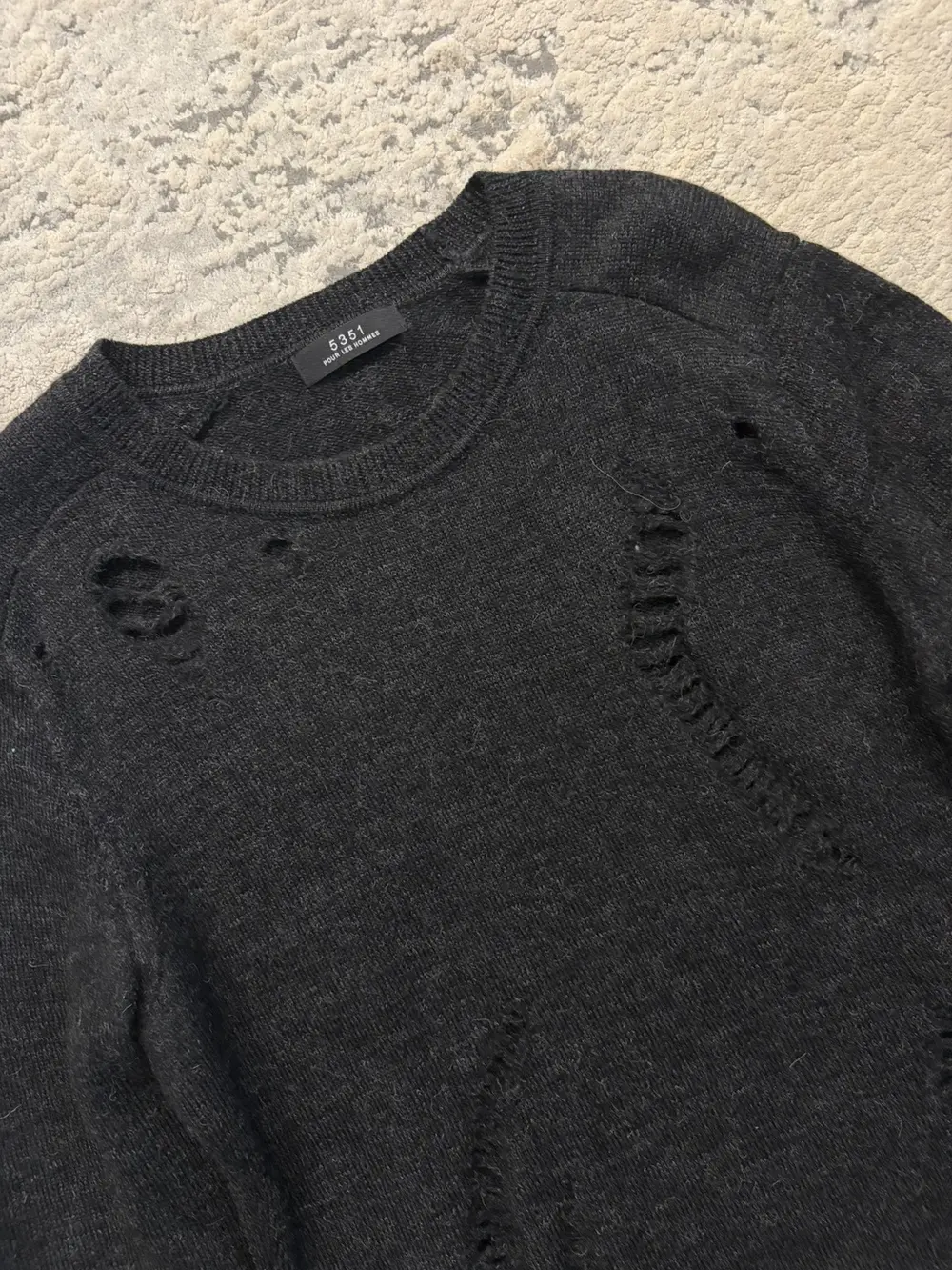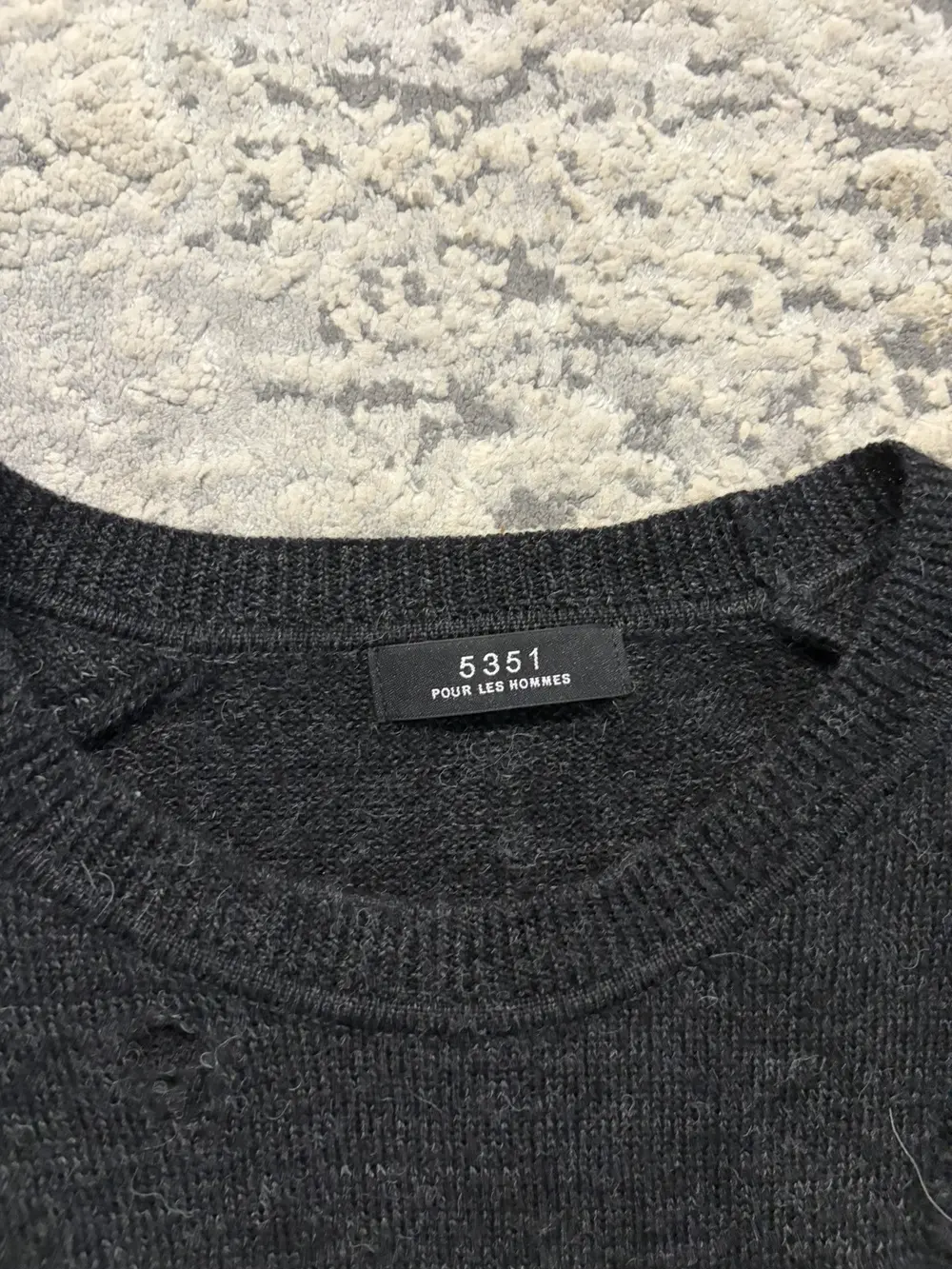 5351 Pour Les Hommes – Distressed Knit Black Crewneck Longsleeve 17×25