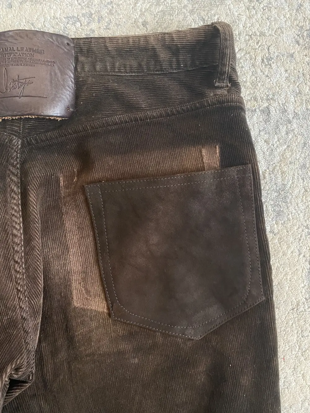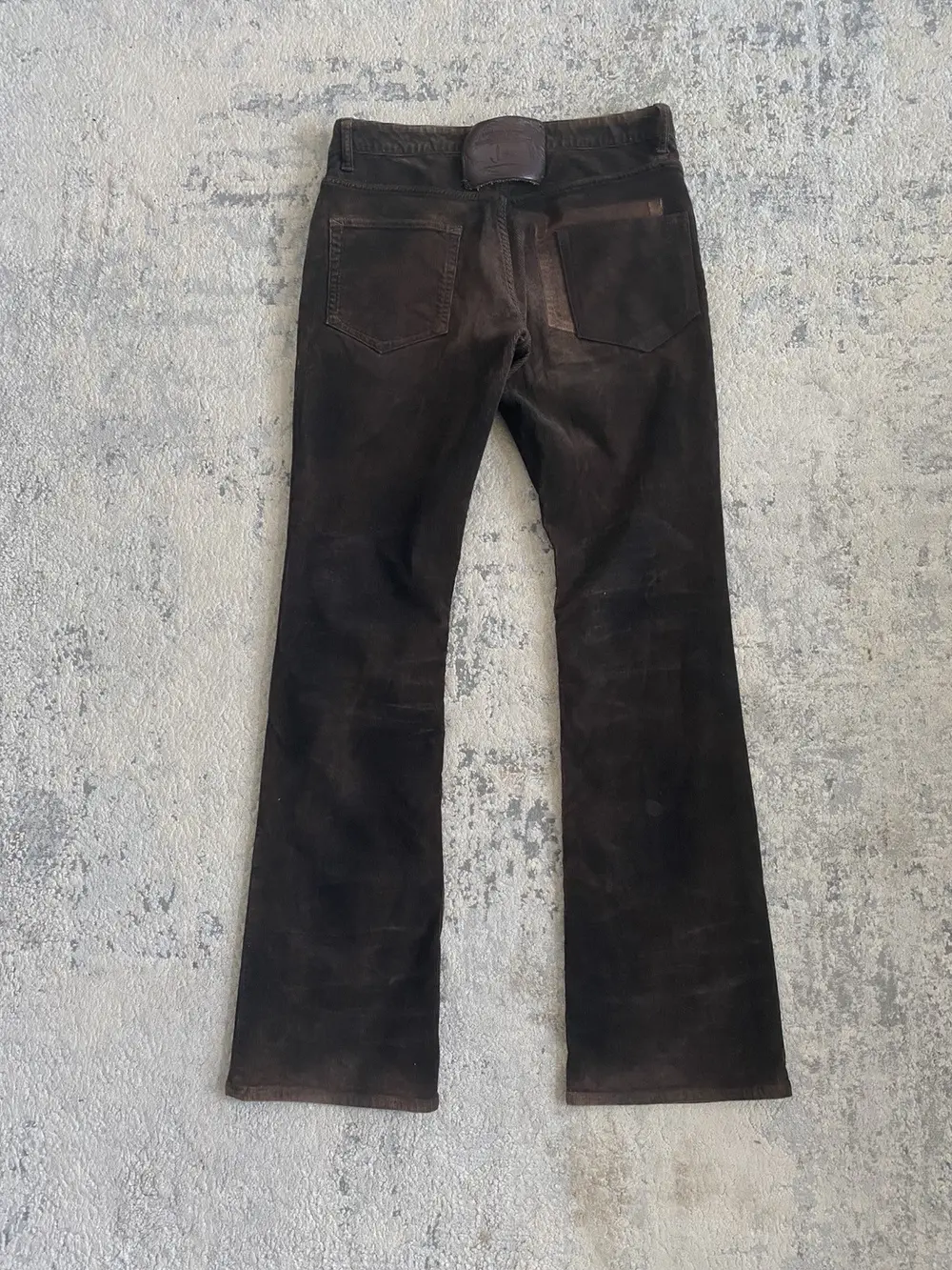 These high-quality bootcut jeans from Backlash feature thick burnt brown corduroy, offering durability and a nice texture. The bootcut silhouette ensures a flattering fit, while a premium leather back patch adds rugged sophistication.