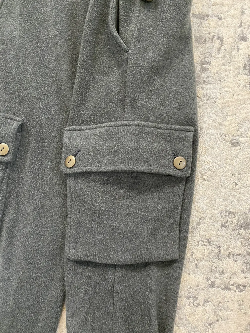 Cargo sweatpants from Japanese label Beauty Beast that uses a stretchy soft acrylic/wool with a subtle bootcut silhouette. You’re gonna feel like a bad bih with these on. These are the grey sweats you wear when you’re trying to get an archive fashion GF