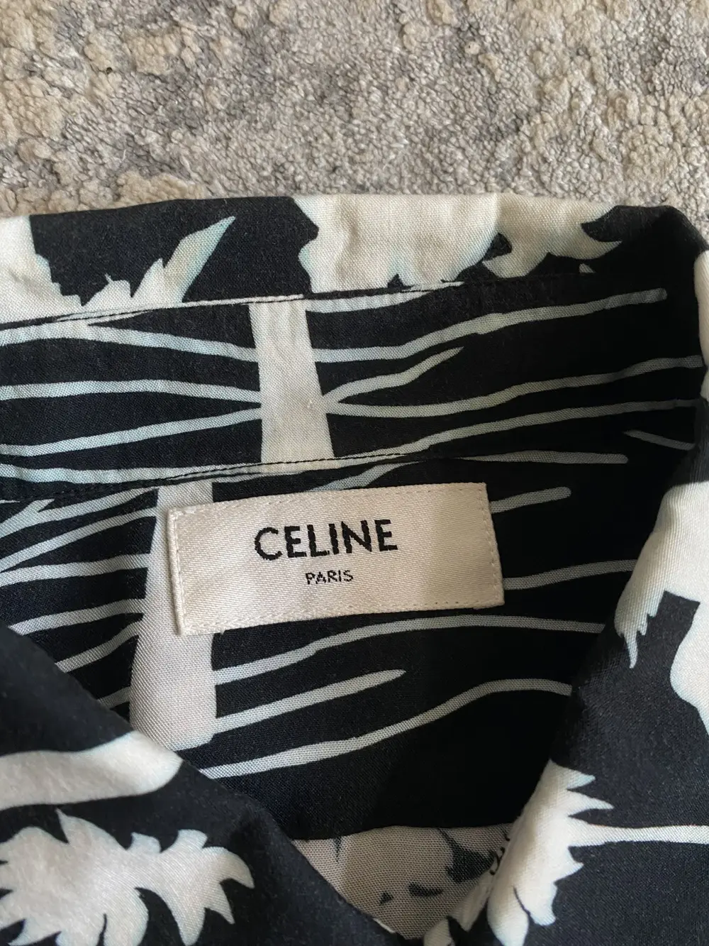 From Celine’s Spring/Summer 2021 collection by Hedi Slimane, this button-up tee features an all-over palm tree print and is crafted from soft, breathable viscose with a silk-like finish for a flowy, comfortable feel.