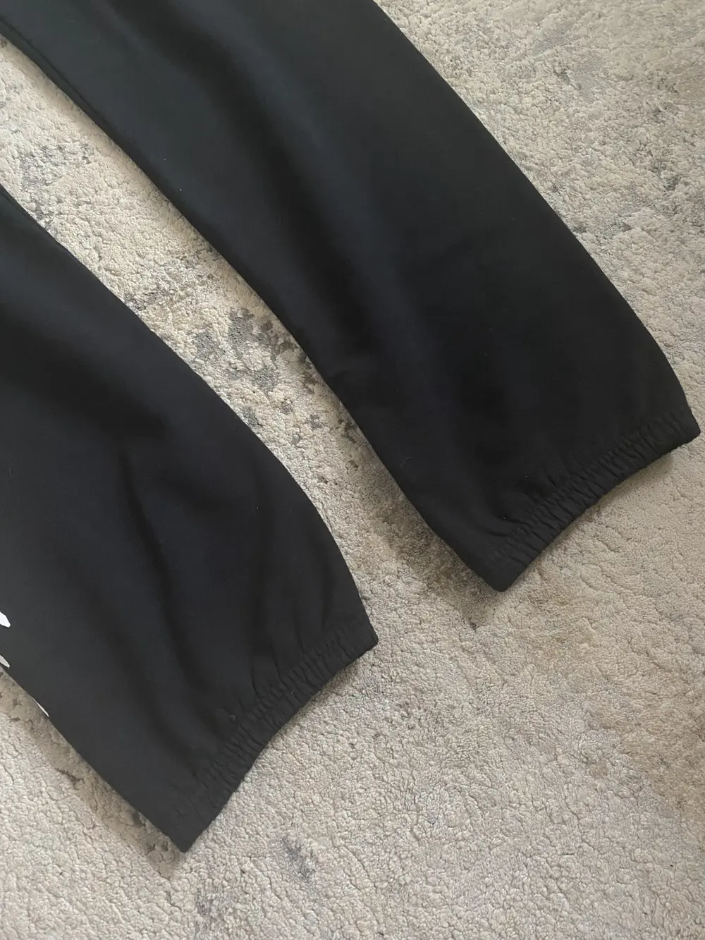 Classic sweatpants from Chrome Hearts crafted in black cotton with cuffed hems, elastic waist, and inner drawstring for comfort and fit. Features Chrome Hearts branding at the top with a vertical logo, plus a bold swooping 3 Cross motif along the right leg. Cut with an extra‑long 49″ outseam and 37″ inseam, delivering a dramatic elongated silhouette.