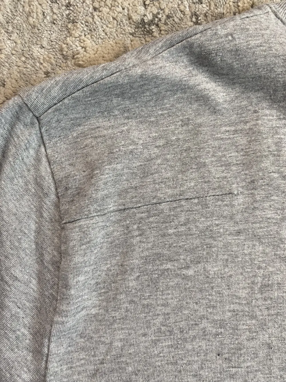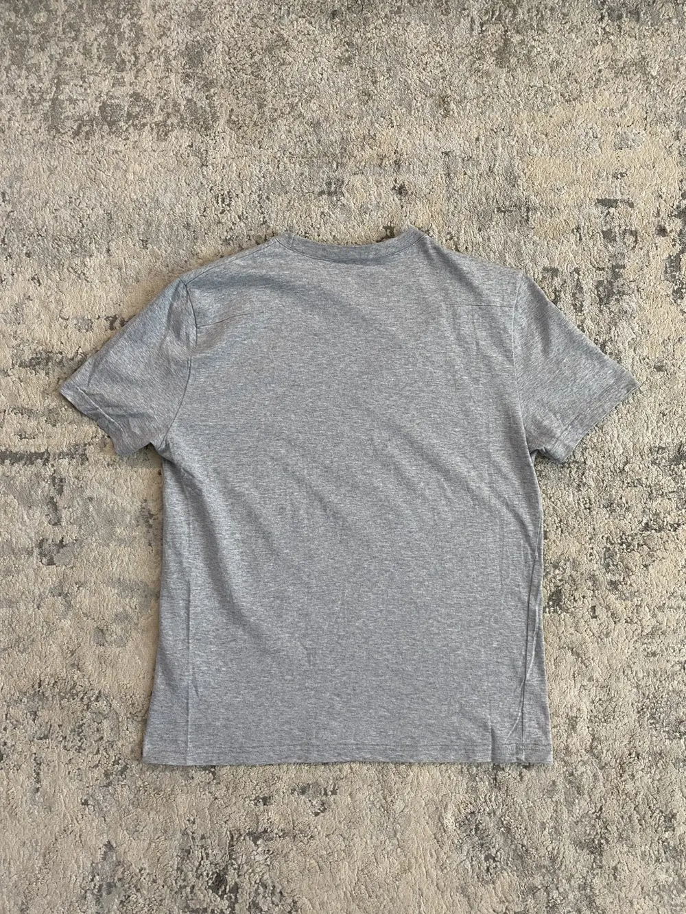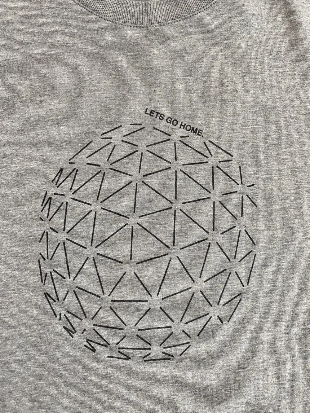 Heather gray short-sleeve tee from Hedi Slimane’s Autumn/Winter 2007 collection. Features a bold geometric globe graphic printed at the chest, evoking themes of displacement and futurism. Constructed with darted back shoulders for tailored structure and subtle architectural shaping. A rare archival piece from Hedi Slimane’s final year at Dior.