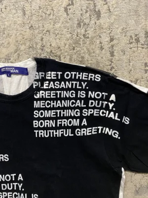 From Hedi Slimane’s AW05 “In The Morning” collection, this graphic comes from a real moment Hedi Slimane lived through in late 2004, when a Babyshambles show at the London Astoria collapsed into chaos after Pete Doherty failed to appear—fans rushed the stage, tore down curtains, smashed gear, and walked off with the drummer’s kit. Slimane, who was deeply embedded in the indie scene at the time, spent those years photographing bands, hanging around small venues, and documenting the raw energy of youth culture. He turned that night’s destruction into this text piece, a distilled snapshot of the world he was immersed in and the mood that shaped his collection to come.