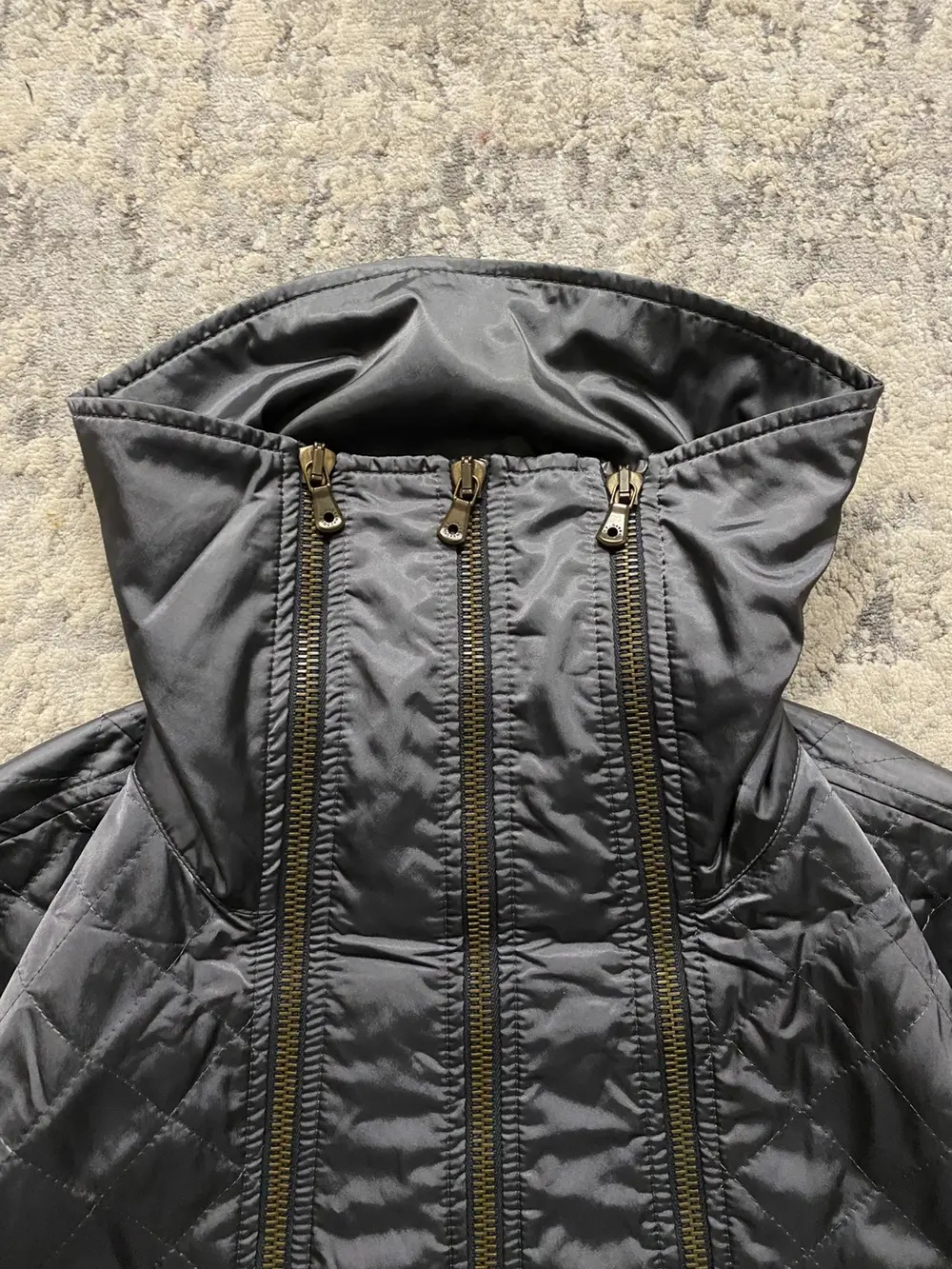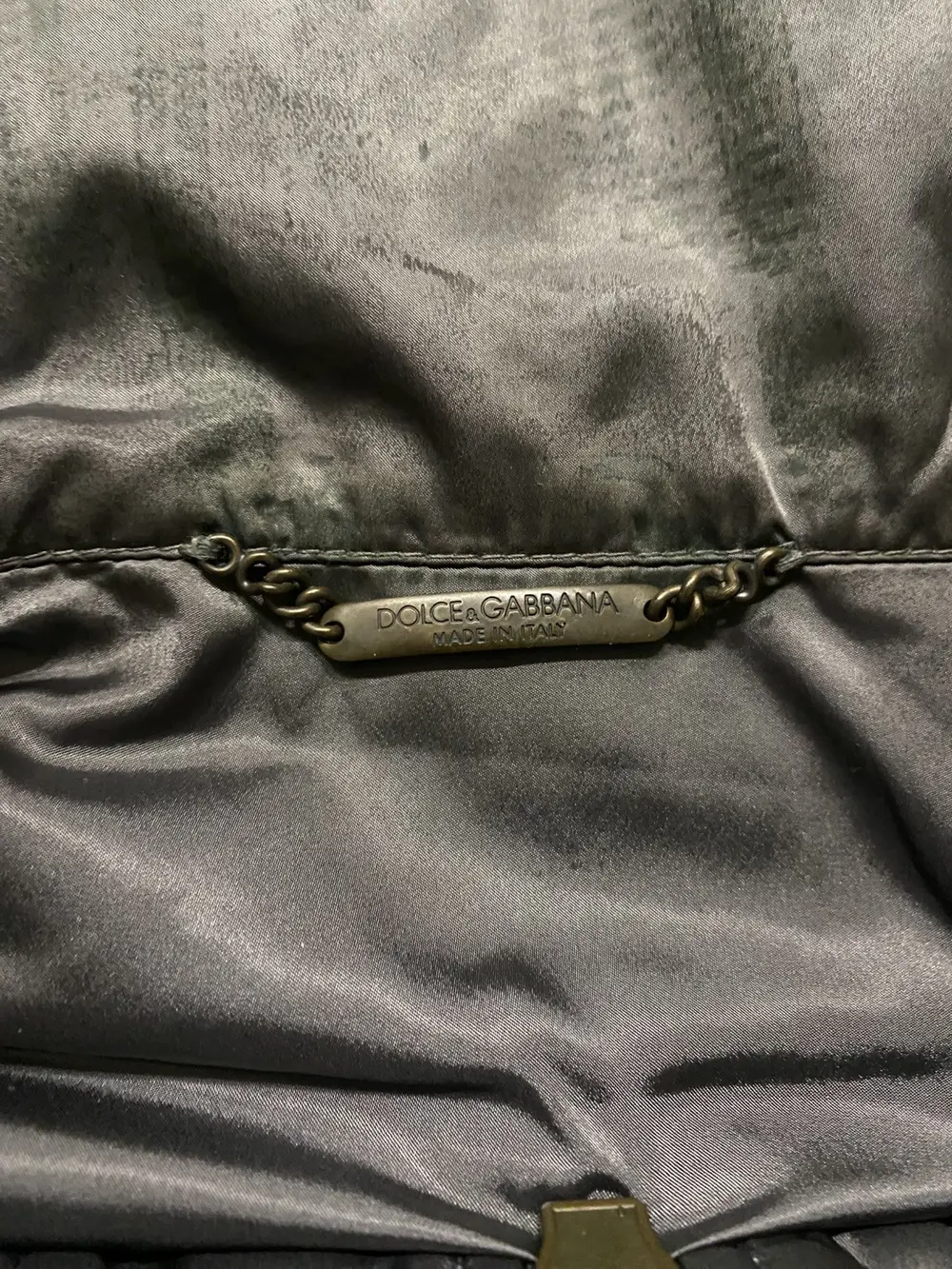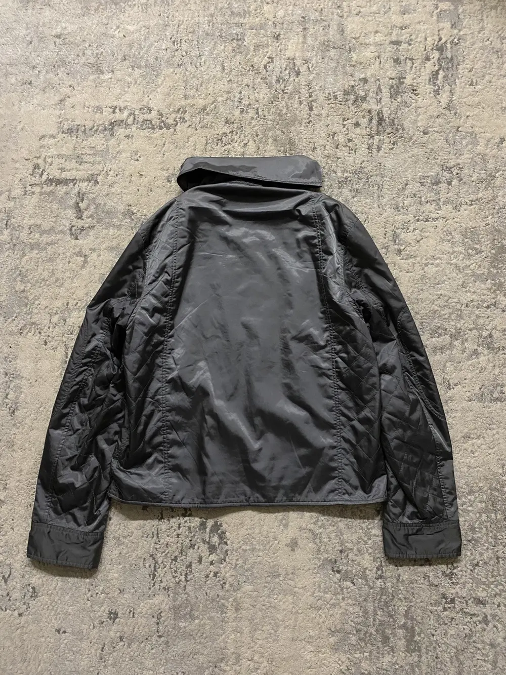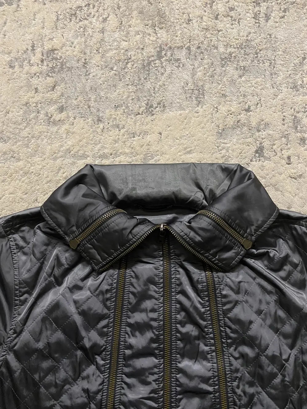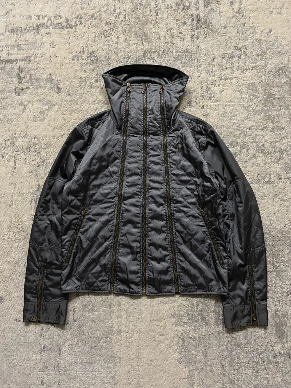 Bomber/track jacket from Dolce & Gabbana from the early 2000s, unsure of the exact season, if you know DM me 😀 Features a high neck with 3 full length zippers going down the front and similar zippers on the sleeves. Can be worn with them zipped up in an “Intartia” style like the rick owens jackets, or unzipped and folded as a collar as seen in the pictures. Quilted Nylon upper that gives a nice sheen when worn in light. Good condition throughout