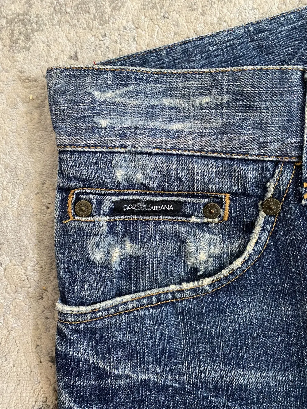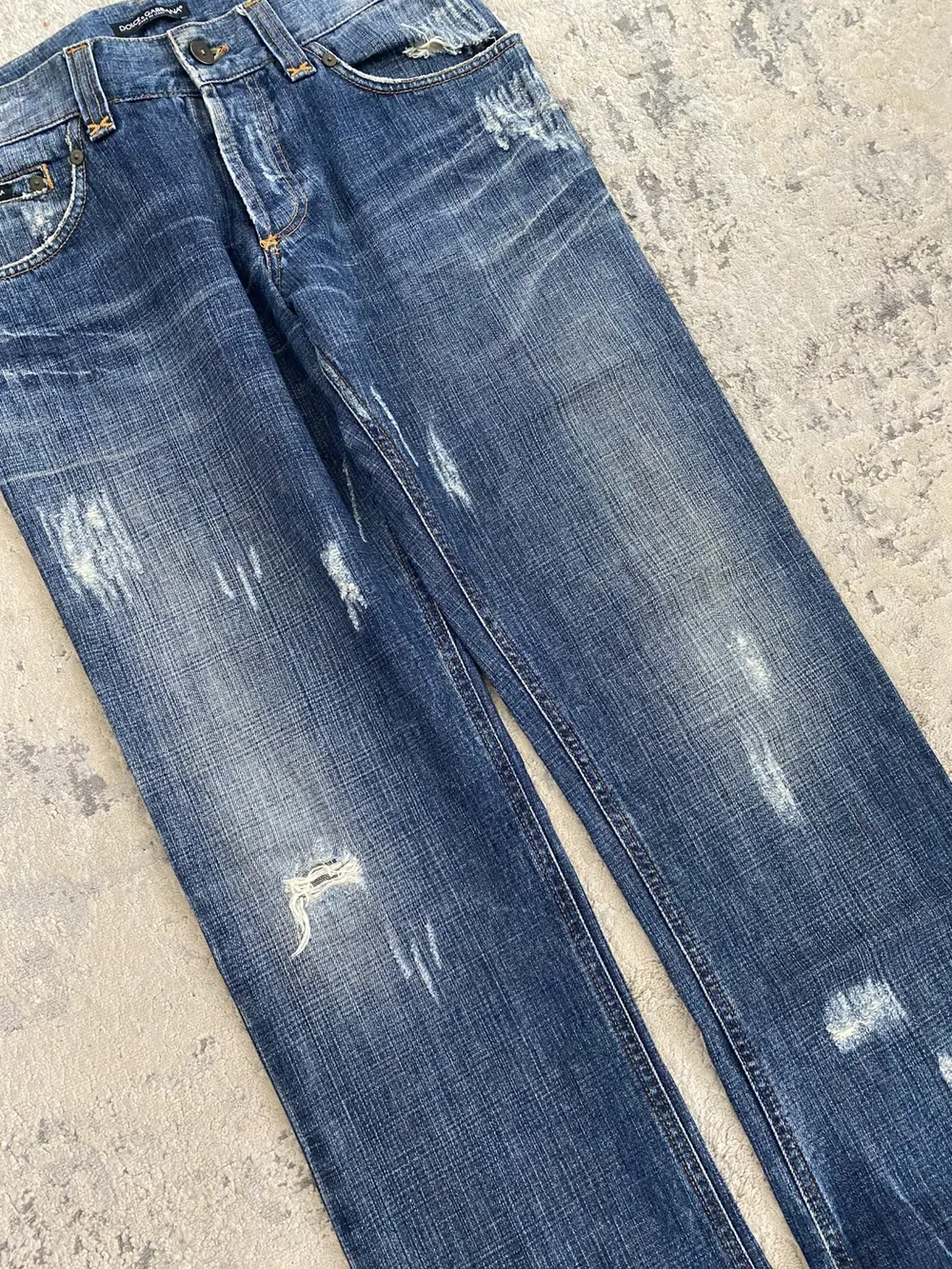 Dolce & Gabbana – Blue Distressed Bootcut Denim 34×32.5