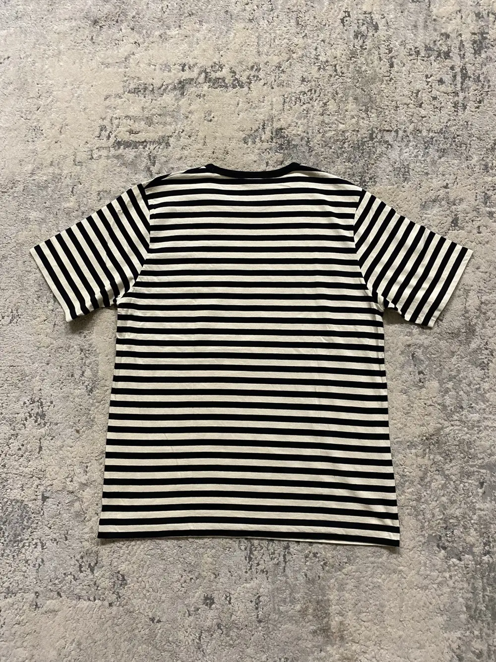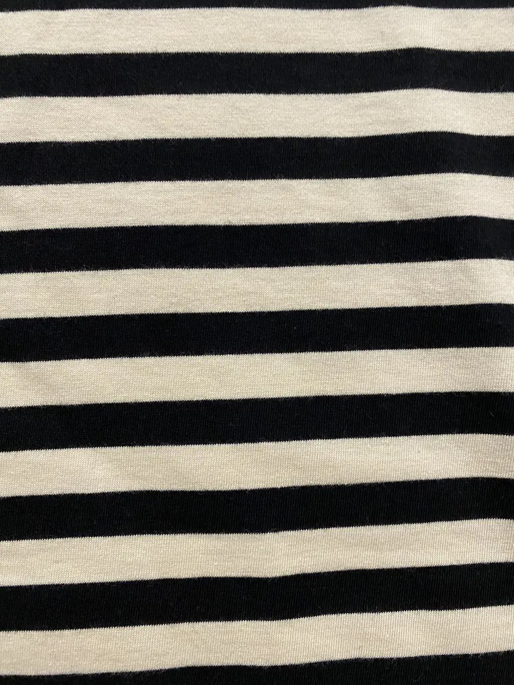 Dries Van Noten black and white striped short sleeve t-shirt. Clean, minimal design with a classic stripe pattern, lightweight cotton construction, and a relaxed fit. Simple, versatile piece that embodies Van Noten’s understated approach—easy to style and timeless in appeal.