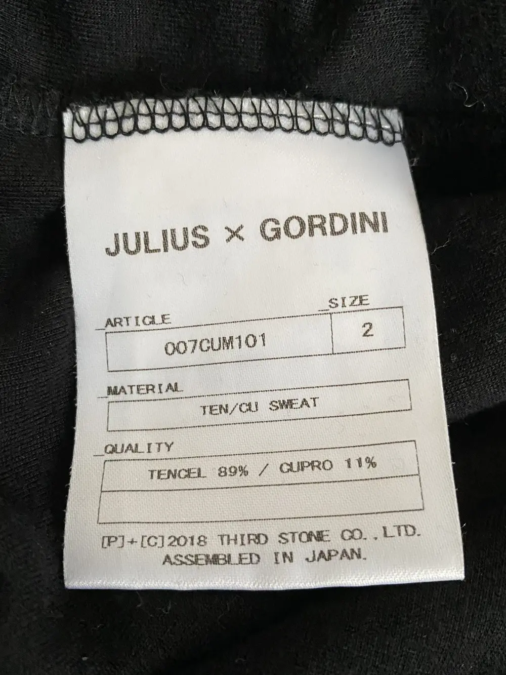 Rare collaboration piece between Julius and Gordini, showcasing the brand’s signature architectural approach to garment design. Features a layered, asymmetric construction with a curved body that naturally stacks to one side when worn, creating a dynamic drape and sculptural silhouette.