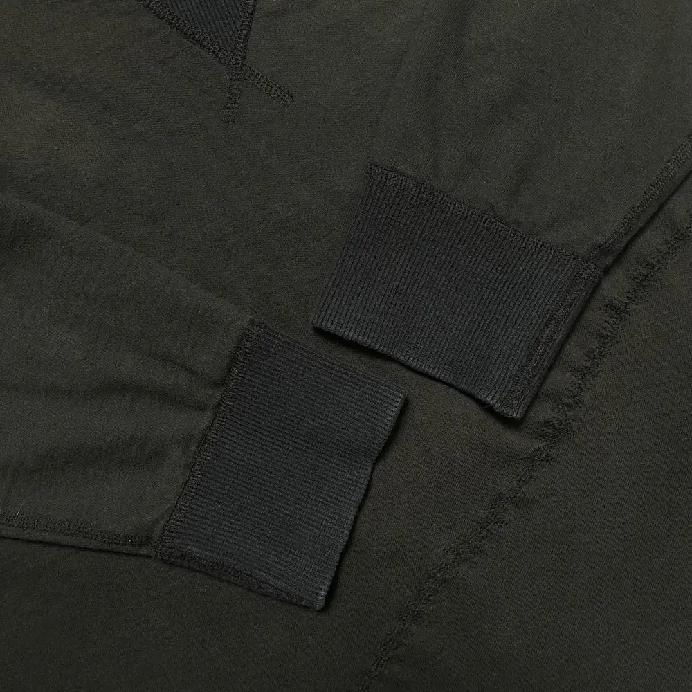 Junya Watanabe Autumn/Winter 2002 sweatshirt showcasing the designer’s signature deconstructed aesthetic. The front features a bold scar-stitch detail, while the back is defined by a cut-out canvas cross reinforced with supple leather for contrast. The undone hem adds a raw, unfinished edge, complemented by a standard sleeve and classic neckline. A rare archival piece that embodies Watanabe’s experimental craftsmanship.