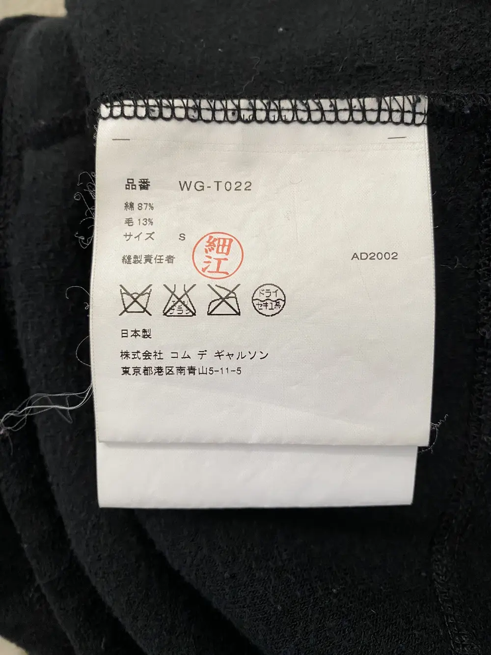 From Junya Watanabe’s AW03 “Middle School” collection, this rare pullover features a Hull Middle School Hornets chest graphic over plush black velvet. Designed with elastic cuffs and drawstring-adjustable hems, it blends collegiate nostalgia with avant-garde construction—classic Junya subversion through everyday iconography.