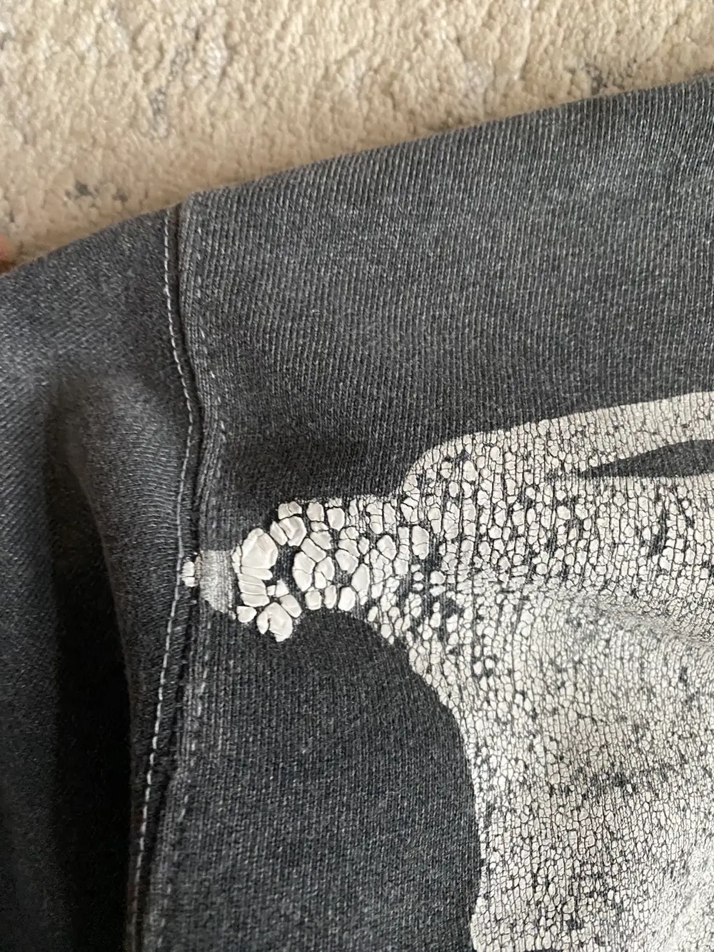 Condition: 7.5/10 small stain on front pictured. distressing on hems neck and sleeves, back print painted area peeling
