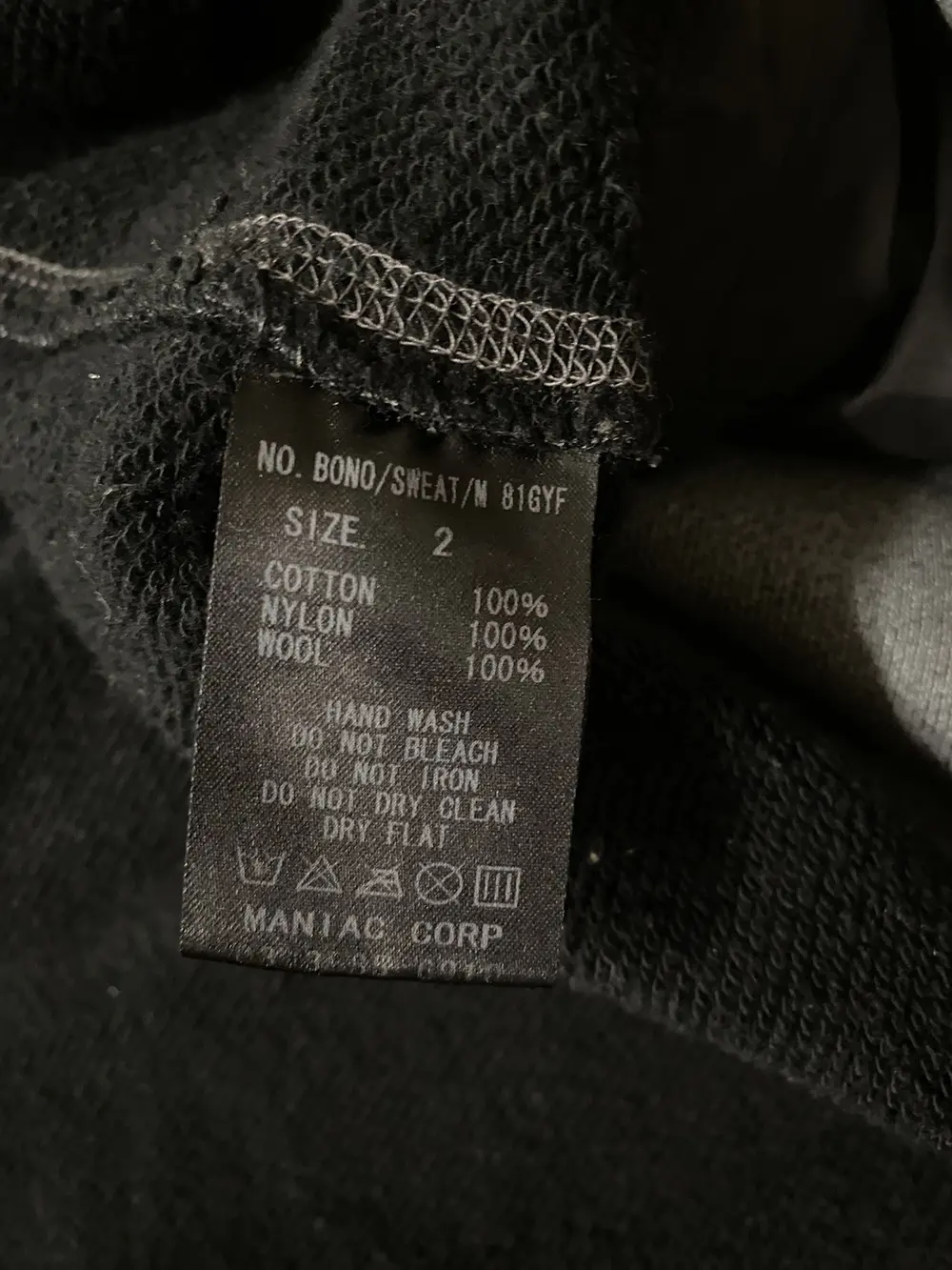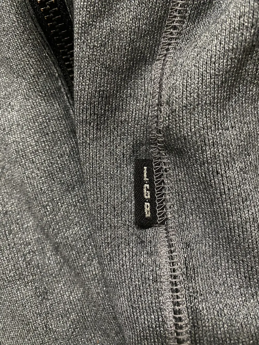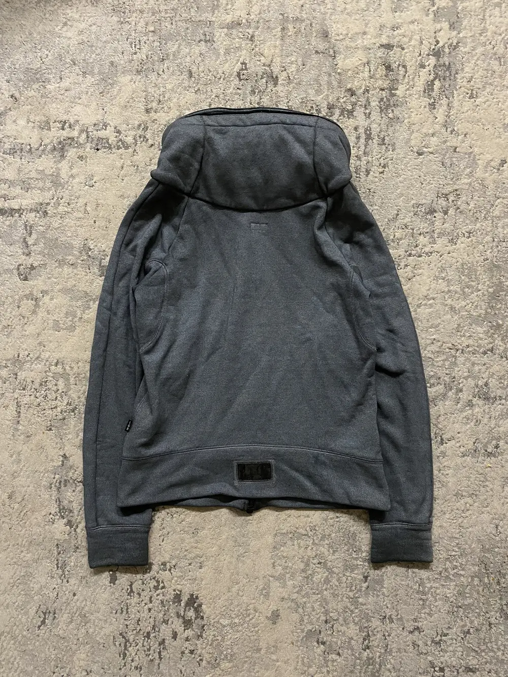 From the Japanese label Le Grand Bleu or L.G.B., this hoodie features a “Bono” hood that comes up to neck level with a traditional hood enclosed by zipper. The material is 100% cotton with an almost shiny metallic grey finish that gives a space-suit vibe. Double zippers down the middle as well as 2 front zipper pockets. LGB branded tags including a vertical LGB pull tag on the front and signature LGB boxing logo on the back. Rare size 2 fits a M up to a slim L.