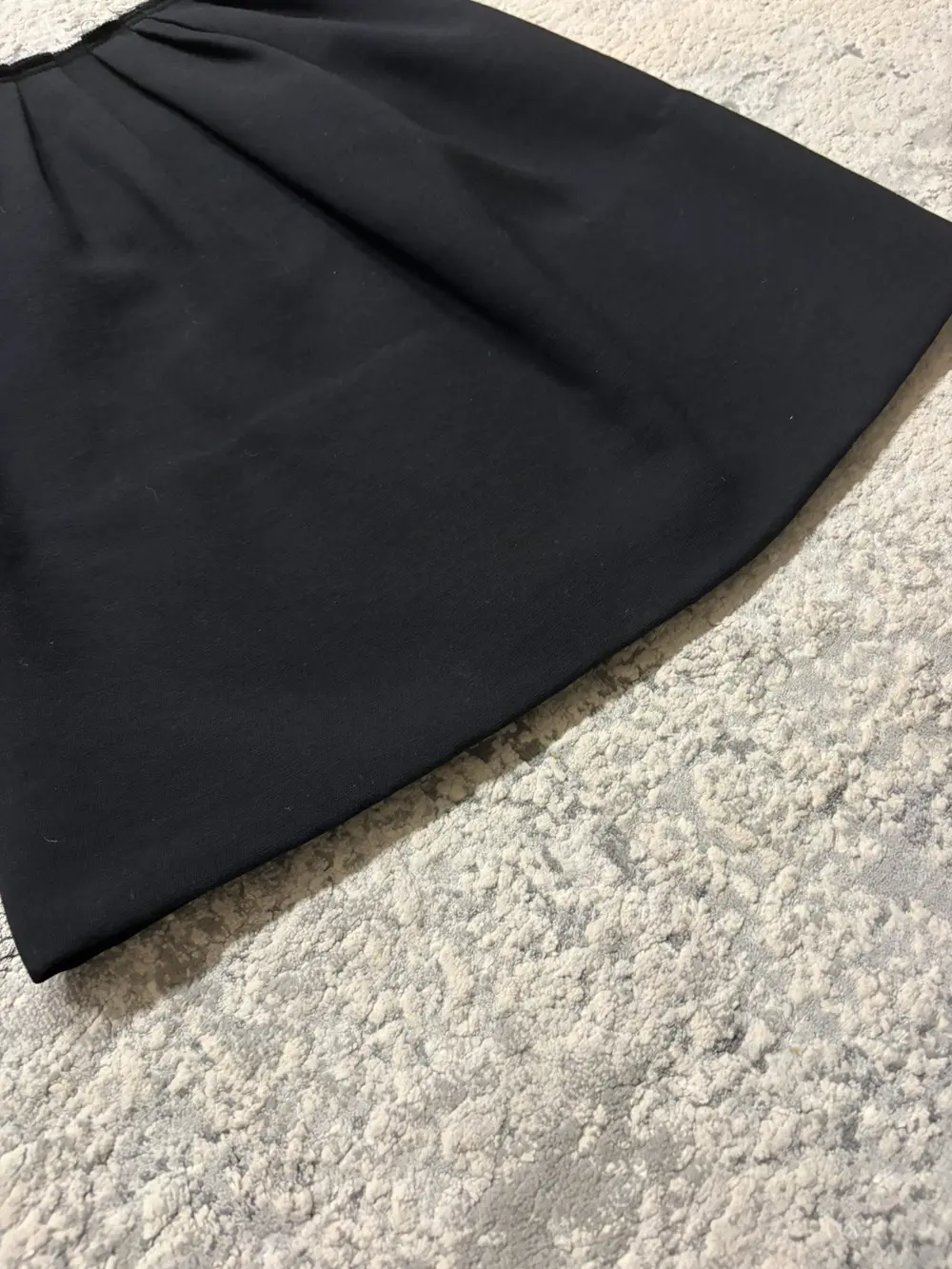 Miu Miu black wool snap‑button skirt with a clean, minimal construction and full front snap closures. Subtle pleating at the waist creates a gentle taper that smooths into a straight, refined lower half.