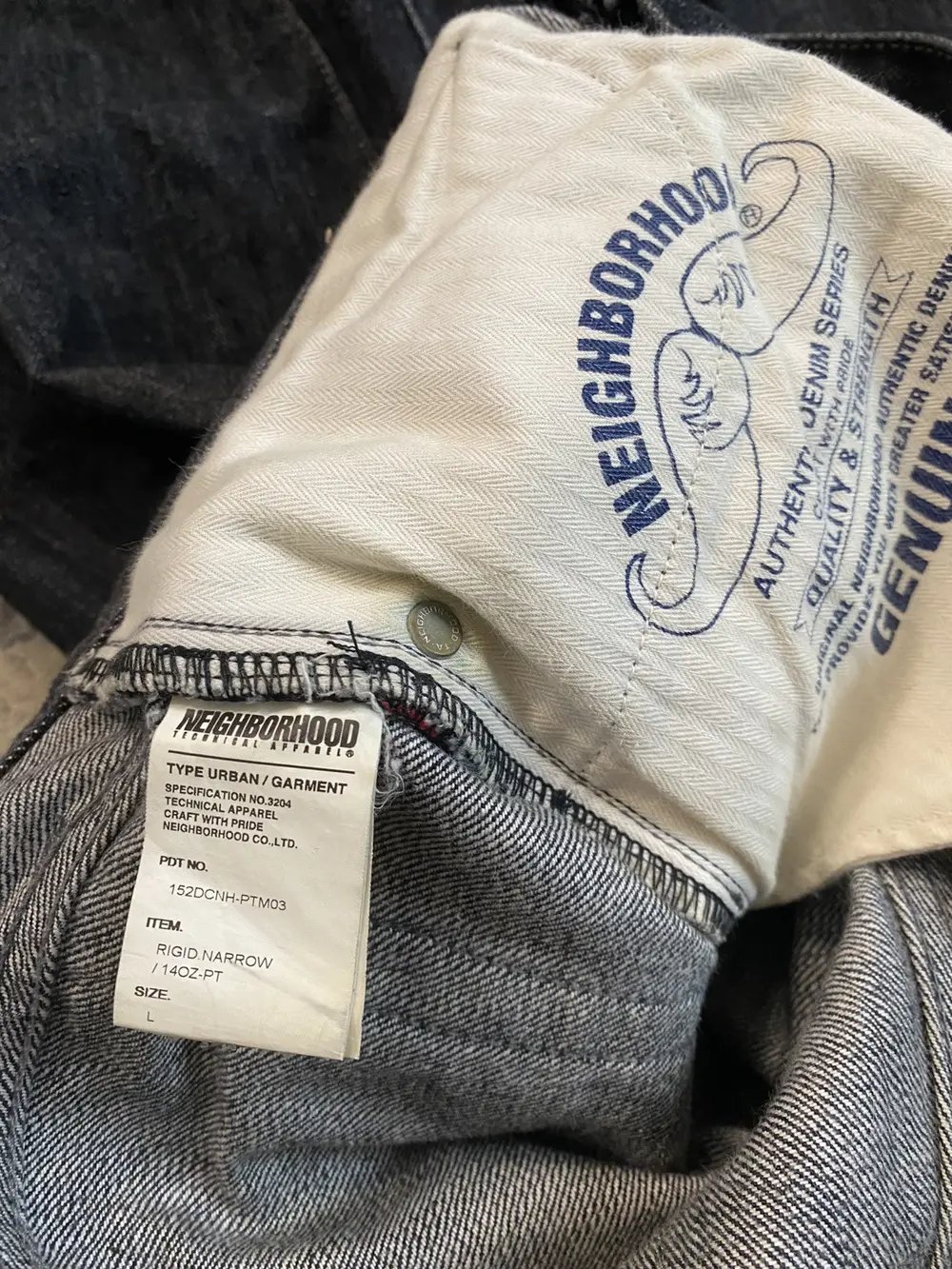 Classic denim from Neighborhood crafted in raw black cotton with subtle white undertones. Cut in a straight leg silhouette for timeless wear. Features a contrasting white leather patch at the waist and selvedge construction for durability and authenticity. A clean, understated piece that embodies Neighborhood’s blend of Japanese craftsmanship and streetwear edge.
