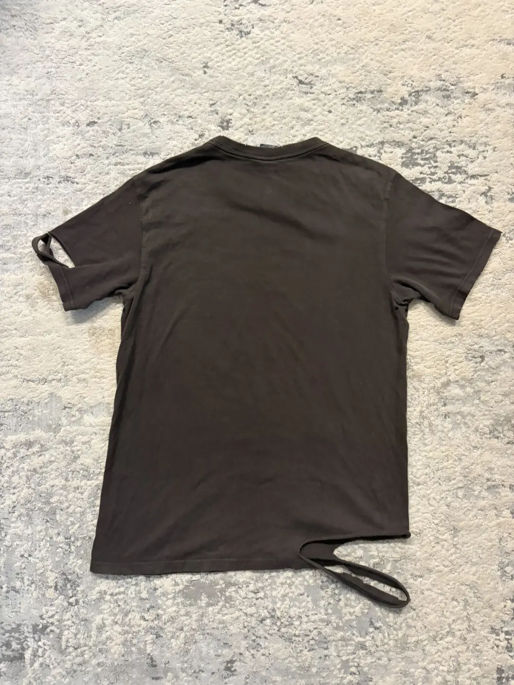 Number (N)ine Autumn/Winter 2004 T‑shirt from the Give Peace a Chance collection, one of the season’s typography pieces built around politically charged messaging aimed at the U.S. government during that era. This version comes in a vintage brown colorway and features cut‑off sleeves and hem, a slashed chest, and distressing along the neckline, hems, and arm openings. A raw, deconstructed take that matches the tone of the collection and the runway styling from FW04.