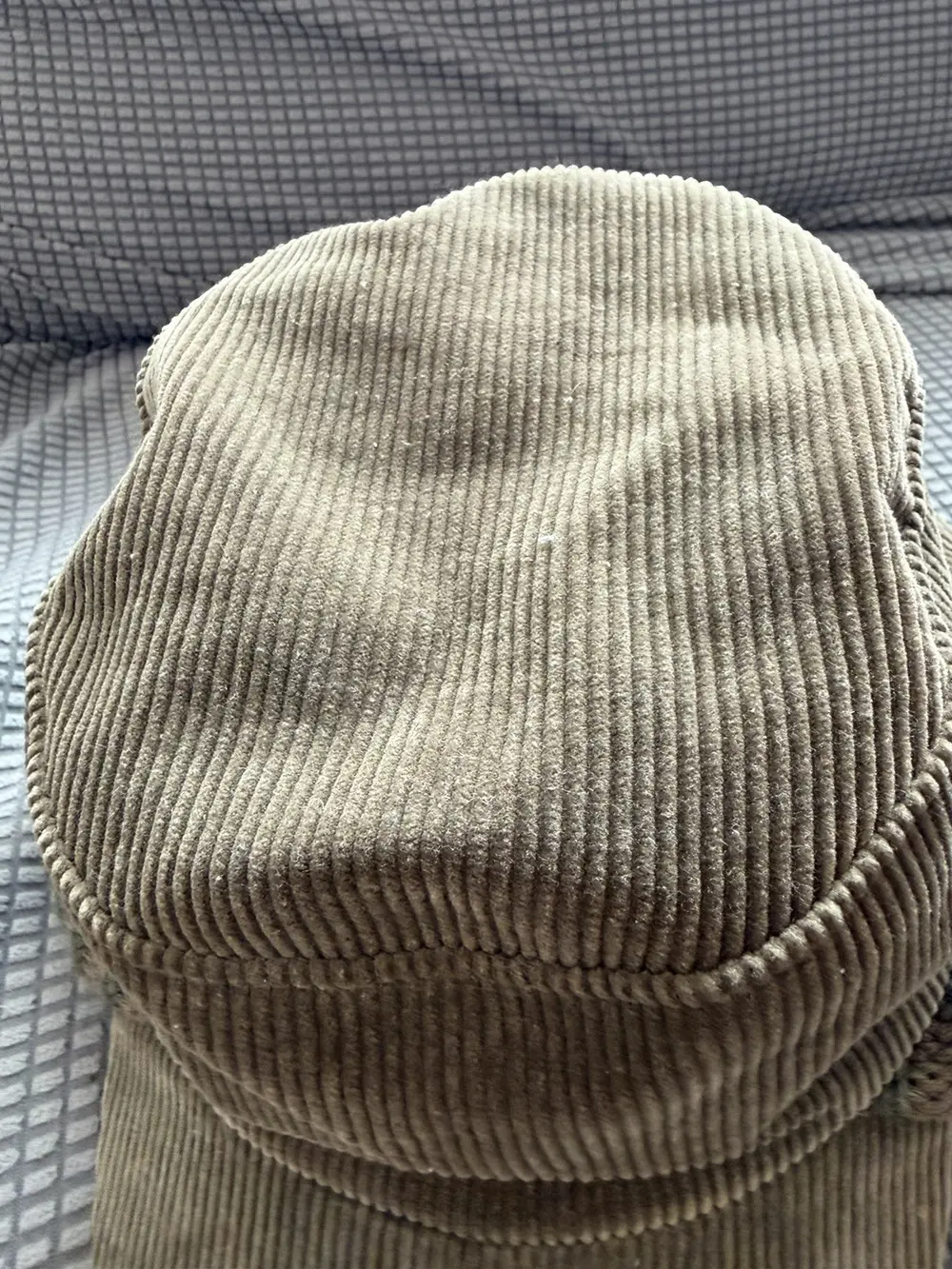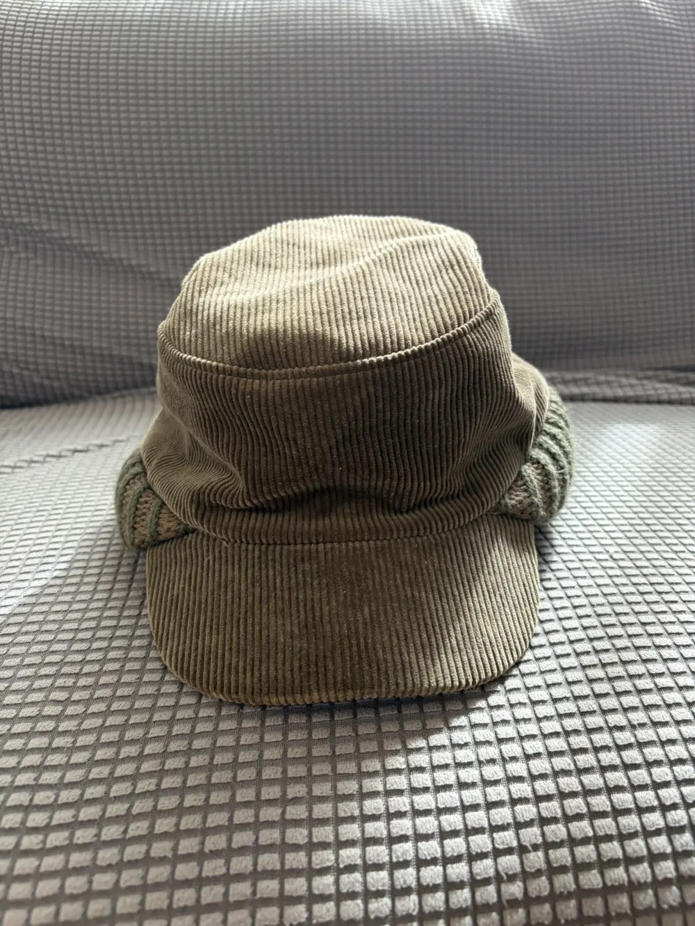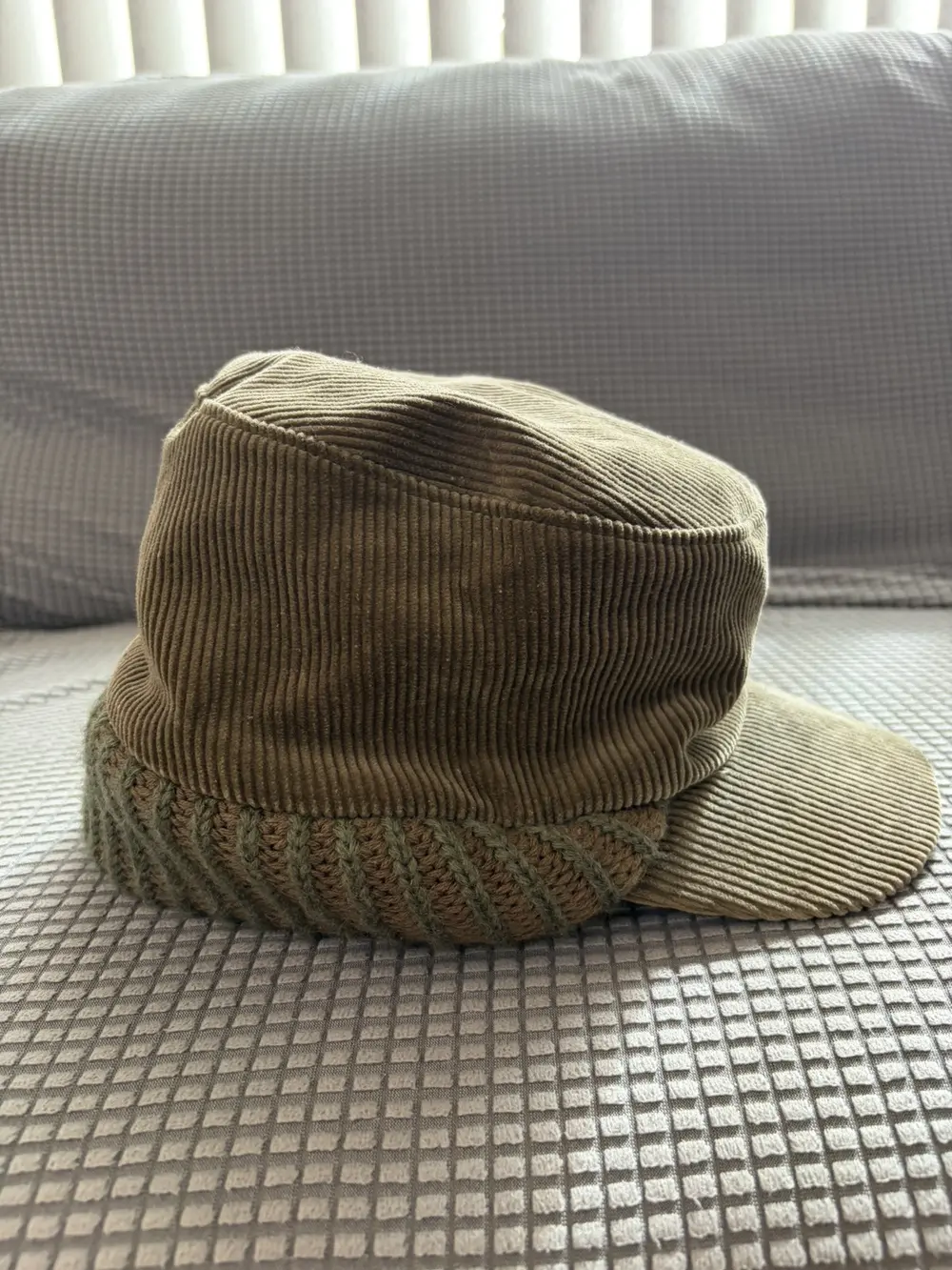 First shown in Number (N)ine’s Autumn/Winter 2008 “My Own Private Portland” collection, this cap is constructed from soft corduroy and wrapped with a knit cushion panel that runs along the sides and back. It features long ear covers that hang naturally from each side, a structured front visor, and a smooth satin‑like liner inside for added comfort. A standout accessory from one of Miyashita’s most beloved late‑era seasons.