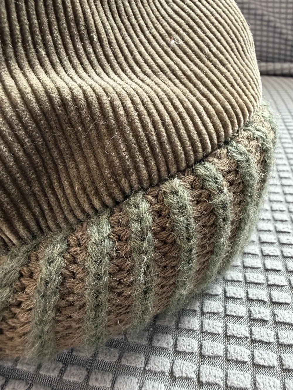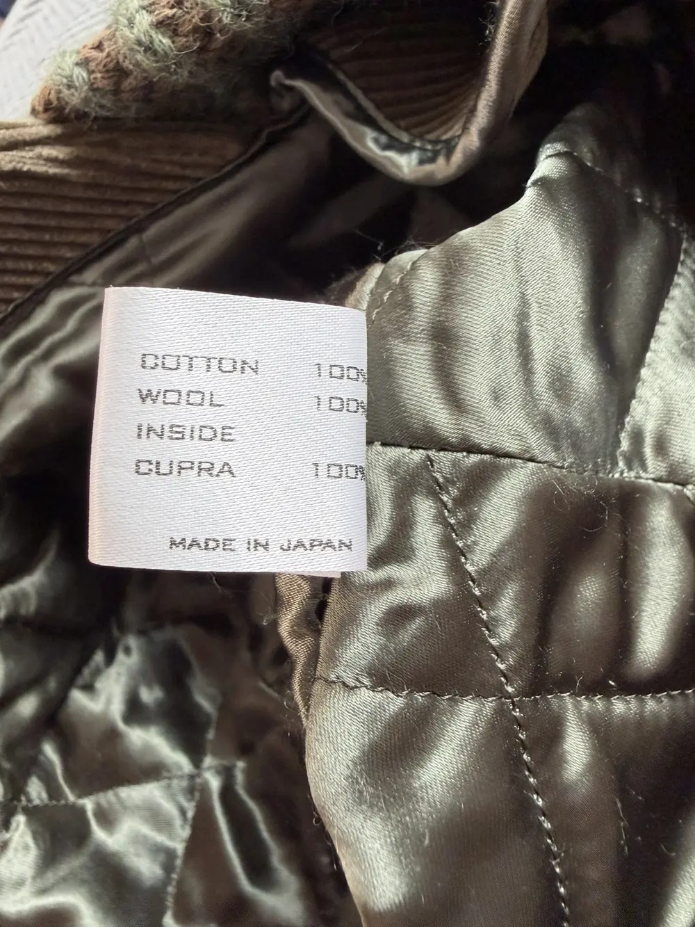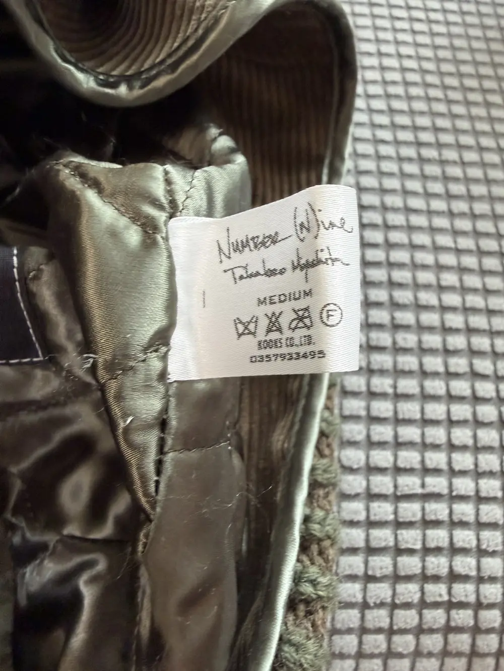 First shown in Number (N)ine’s Autumn/Winter 2008 “My Own Private Portland” collection, this cap is constructed from soft corduroy and wrapped with a knit cushion panel that runs along the sides and back. It features long ear covers that hang naturally from each side, a structured front visor, and a smooth satin‑like liner inside for added comfort. A standout accessory from one of Miyashita’s most beloved late‑era seasons.