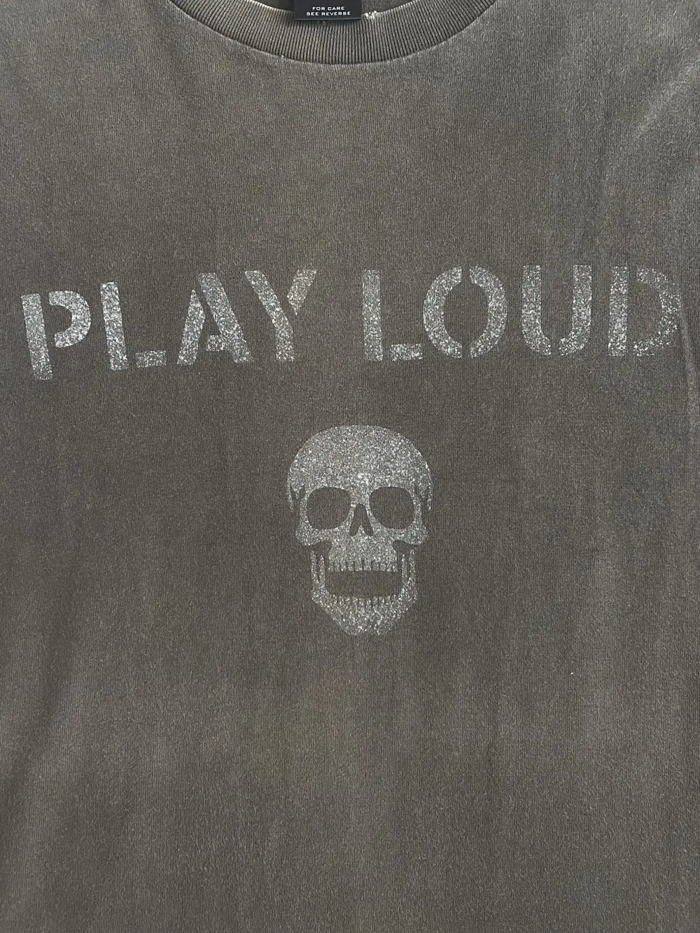Debuting in Takahiro Miyashita’s Spring-Summer 2004 collection, Dream Baby Dream, this tee is a standout piece from the era. It features Miyashita’s signature typography, with the bold phrase “Play Loud”, accompanied by a skull graphic in a cracked marble print. This design reflects the brand’s punk-inspired aesthetic and deep-rooted connection to music culture.