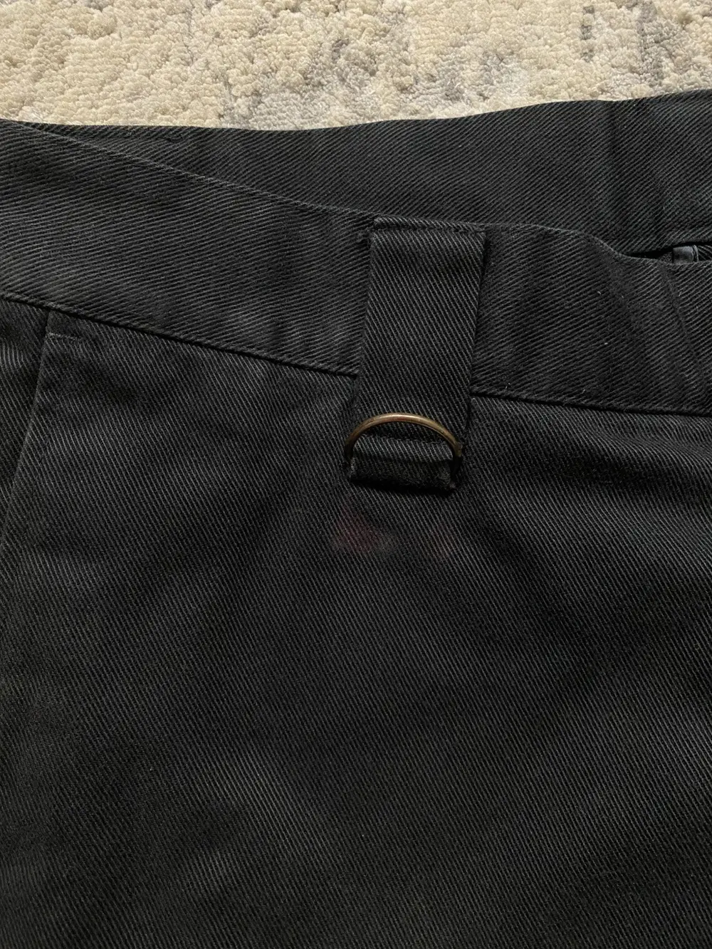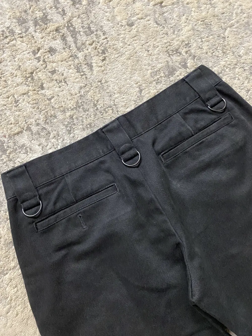 2 front D-rings 3 back on back, front shows some faint red stains from metal pictured