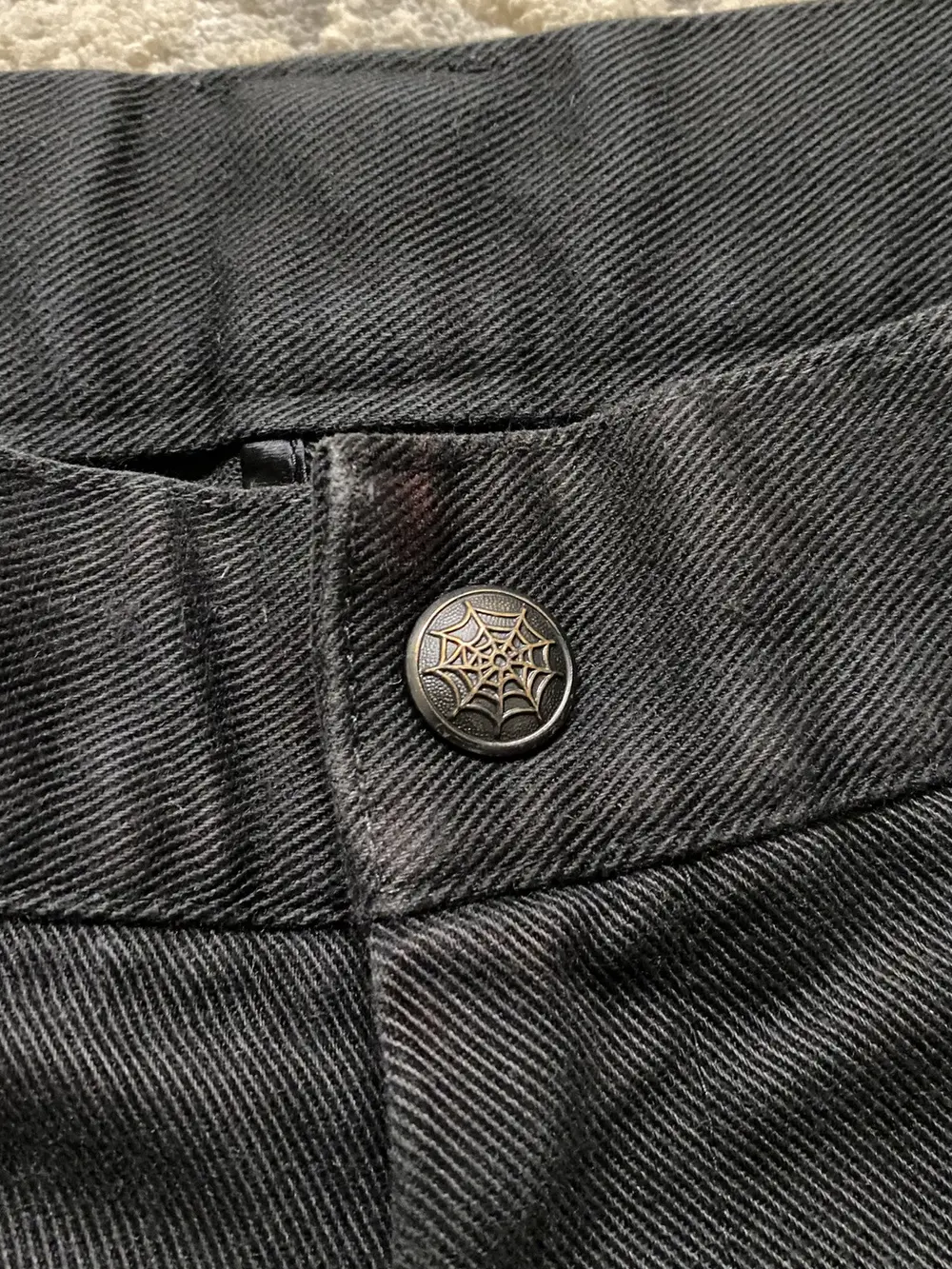Spider web button engraving detail