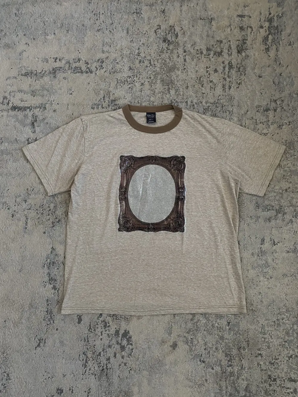 From Takahiro Miyashita’s emotionally charged SS06 collection, this tee features a vinyl mirror graphic — a literal and metaphorical reflection of the season’s introspective themes. Crafted from soft heathered beige cotton, it balances grunge-era texture with conceptual clarity. Rare size 4 fits like a true Large, making it a standout among typically undersized Japanese archive pieces.