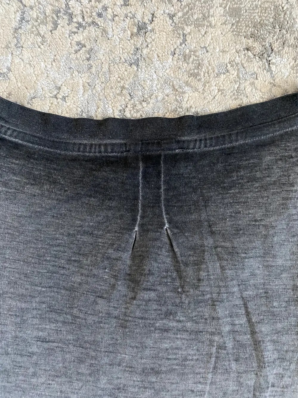 Features a grey-to-black gradient with a sunfaded effect, giving it a worn-in, vintage-inspired look. Made from lightweight, soft cotton, it offers a breathable and comfortable fit. A black silk pocket adds a refined contrast, while the yoke detail on the back enhances structure and drape.