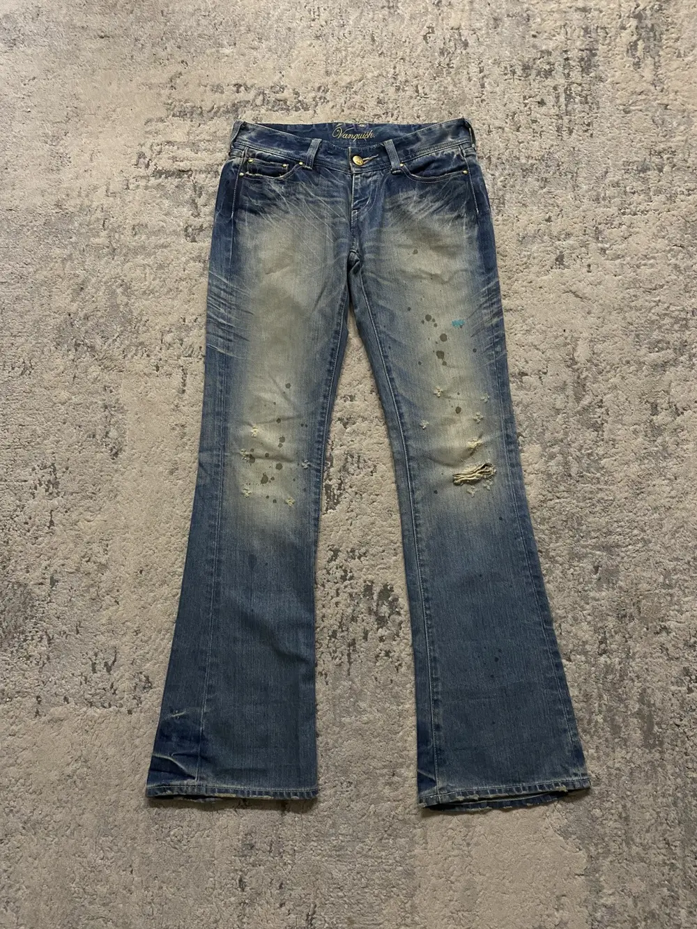 Vanquish – Oil Stained Distressed Flare Jeans 31×34