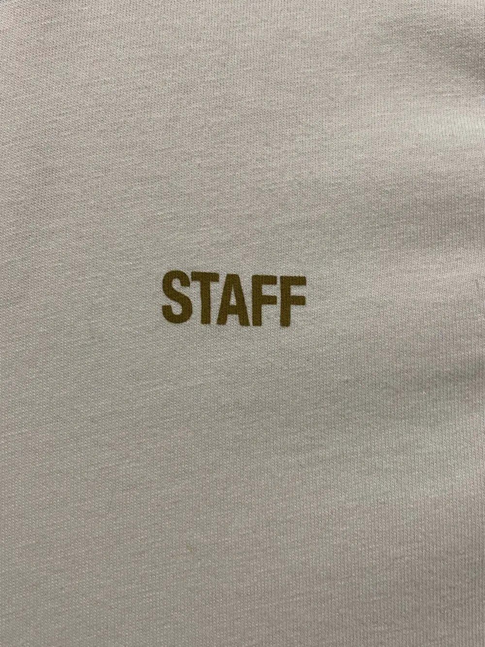 This Vetements tee plays it quiet up front with a STAFF chest print in mustard yellow, while the back features bold black Vetements logo. Soft white 100% cotton. Have 3 black pairs of these 2 M 1 L