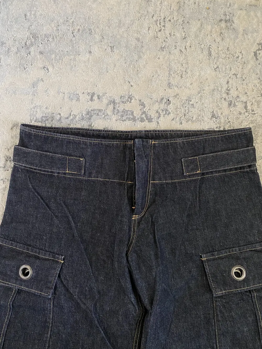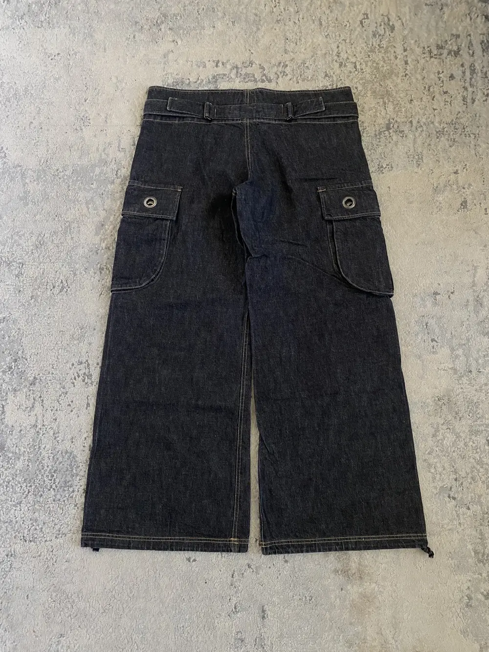 Y’s Yohji Yamamoto – Wide Leg Sinched Raw Denim Cargo Pants 36×29.5